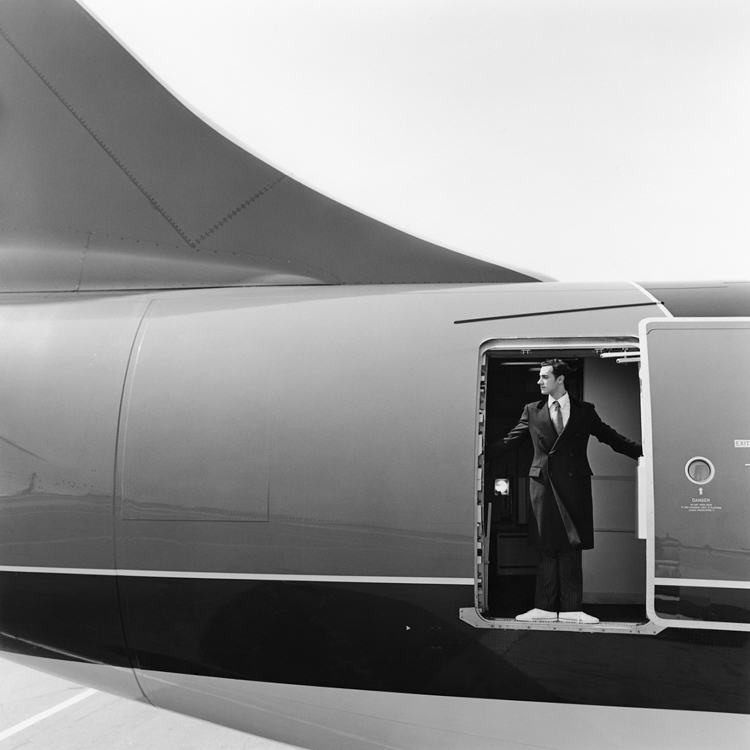 Eventually my request was granted, and we were allowed one hour (escorted by many guards) to make these pictures. Only the model was allowed on the wing. He was watched and supervised like a hawk. I must admit it made you feel that at least there is some sense of security around these planes. I (the photographer) was not allowed to be on the wing with him. They did provide me with a movable ladder, but as I was racing the clock, I used it only on one or two occasions.