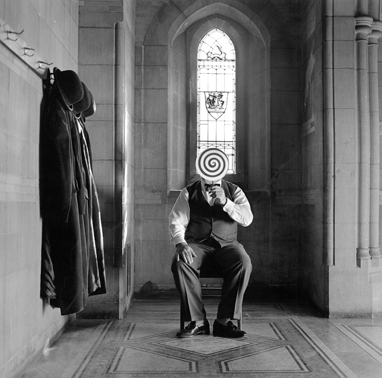 The disk makes me think of Hitchcock, or Mel Brooks – or both. The photo is an arresting image with much to ponder.